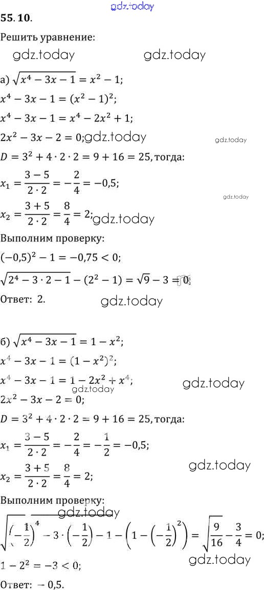 Ответы к §55. Равносильность уравнений Глава 10 55. 10 Задачнику по Алгебре для 10-11 класса Мордкович, Денищева Базовый уровень Мнемозина 2015