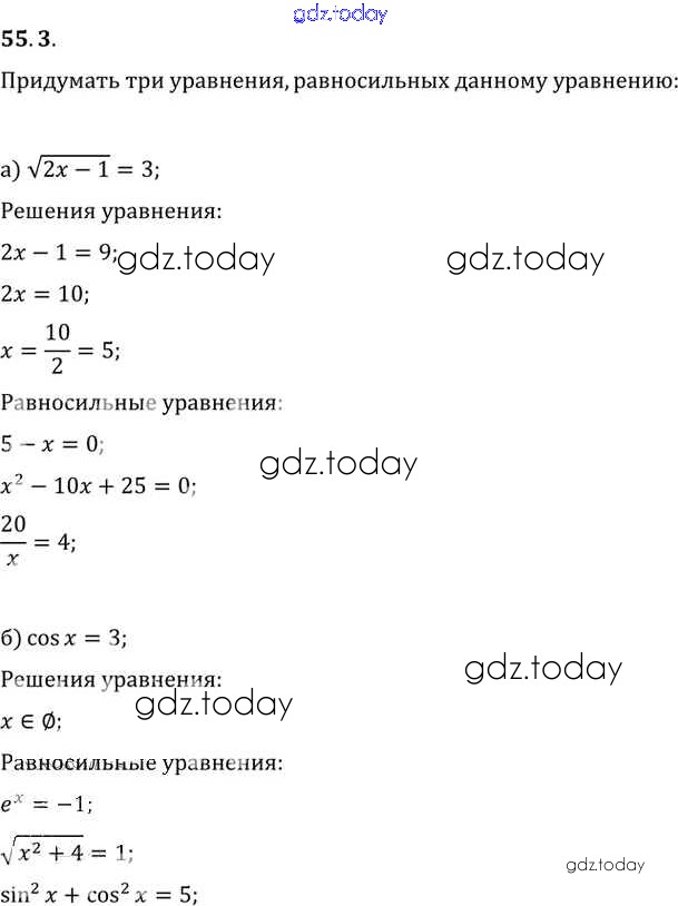Ответы к §55. Равносильность уравнений Глава 10 55. 3 Задачнику по Алгебре для 10-11 класса Мордкович, Денищева Базовый уровень Мнемозина 2015