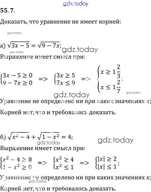 Ответы к §55. Равносильность уравнений Глава 10 55. 7 Задачнику по Алгебре для 10-11 класса Мордкович, Денищева Базовый уровень Мнемозина 2015