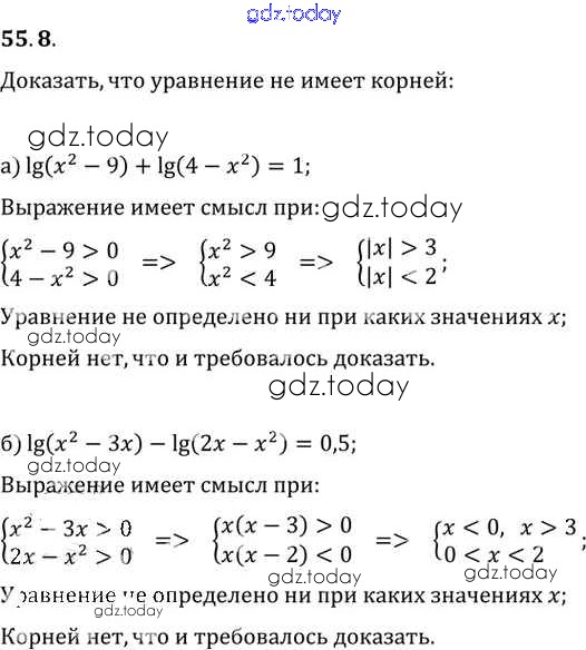 На страницах сайта gdz.today вы найдете учебный и вспомогательный материал, направленный на улучшения знаний школьной программы. ГДЗ - онлайн мир знаний §55. Равносильность уравнений Глава 10 55. 8 Задачнику по Алгебре для 10-11 класса Мордкович, Денищева Базовый уровень Мнемозина 2015