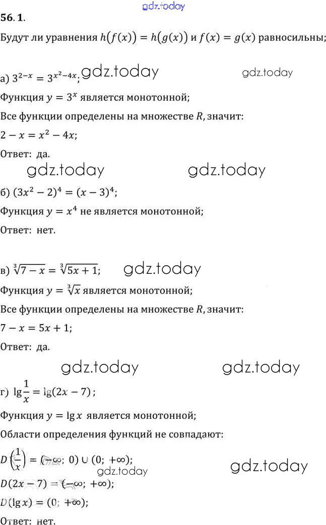 Ответы к §56. Общие методы решения уравнений Глава 10 56. 1 Задачнику по Алгебре для 10-11 класса Мордкович, Денищева Базовый уровень Мнемозина 2015