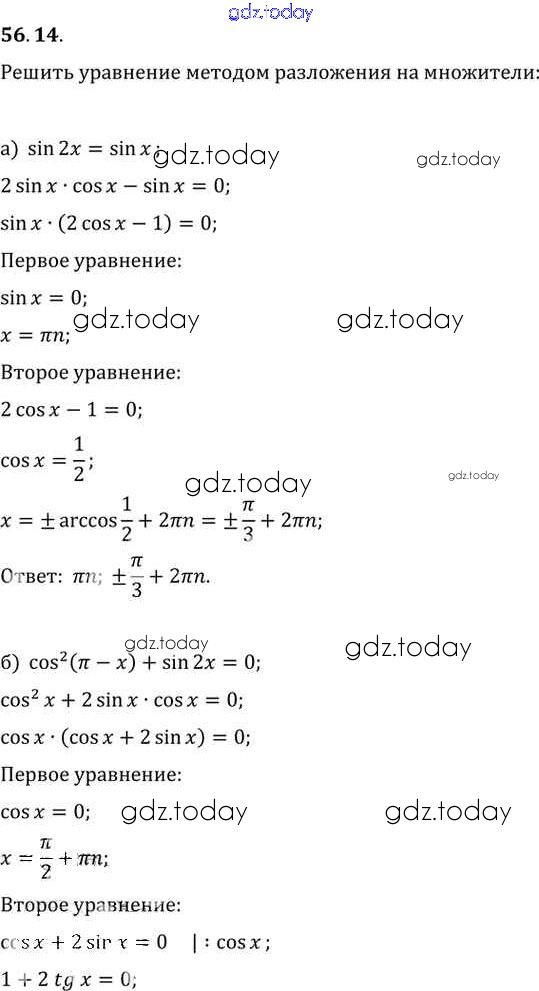 Ответы к §56. Общие методы решения уравнений Глава 10 56. 14 Задачнику по Алгебре для 10-11 класса Мордкович, Денищева Базовый уровень Мнемозина 2015