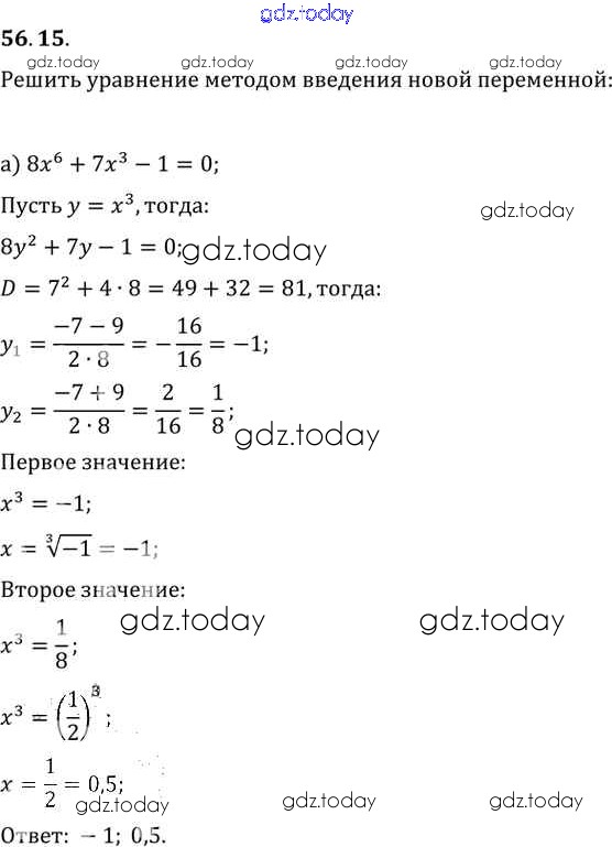 Ответы к §56. Общие методы решения уравнений Глава 10 56. 15 Задачнику по Алгебре для 10-11 класса Мордкович, Денищева Базовый уровень Мнемозина 2015