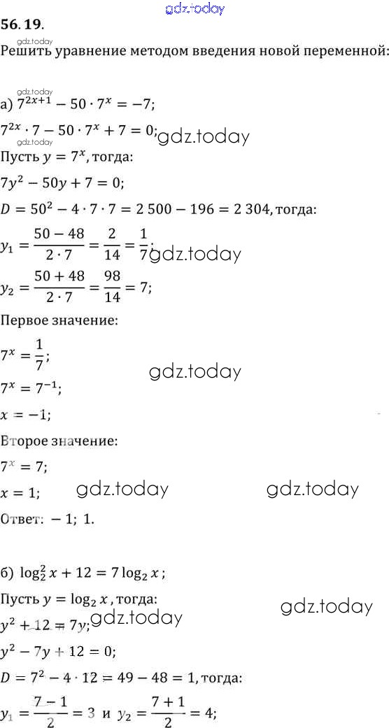 Ответы к §56. Общие методы решения уравнений Глава 10 56. 19 Задачнику по Алгебре для 10-11 класса Мордкович, Денищева Базовый уровень Мнемозина 2015