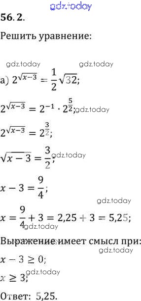 Ответы к §56. Общие методы решения уравнений Глава 10 56. 2 Задачнику по Алгебре для 10-11 класса Мордкович, Денищева Базовый уровень Мнемозина 2015