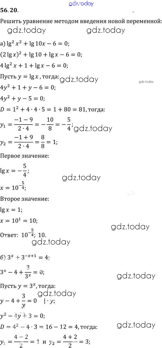 Ответы к §56. Общие методы решения уравнений Глава 10 56. 20 Задачнику по Алгебре для 10-11 класса Мордкович, Денищева Базовый уровень Мнемозина 2015