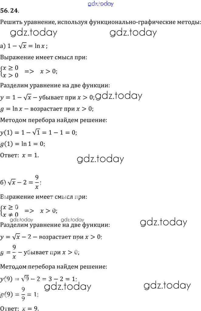 На страницах сайта gdz.today вы найдете учебный и вспомогательный материал, направленный на улучшения знаний школьной программы. ГДЗ - онлайн мир знаний §56. Общие методы решения уравнений Глава 10 56. 24 Задачнику по Алгебре для 10-11 класса Мордкович, Денищева Базовый уровень Мнемозина 2015