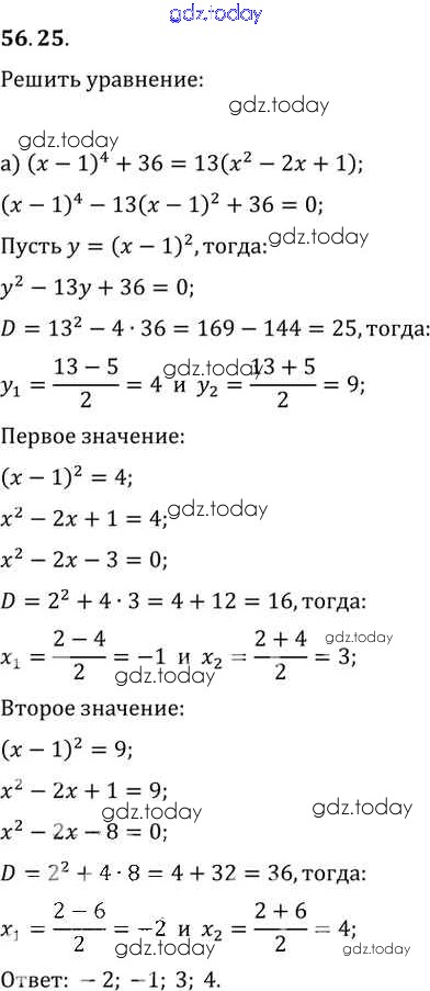 Ответы к §56. Общие методы решения уравнений Глава 10 56. 25 Задачнику по Алгебре для 10-11 класса Мордкович, Денищева Базовый уровень Мнемозина 2015