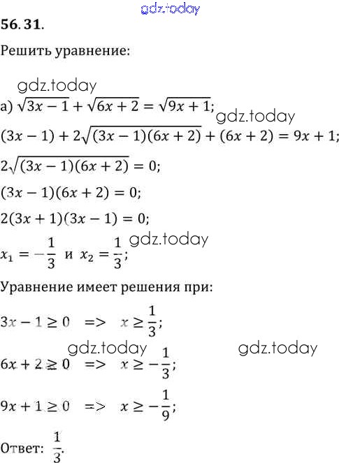 Ответы к §56. Общие методы решения уравнений Глава 10 56. 31 Задачнику по Алгебре для 10-11 класса Мордкович, Денищева Базовый уровень Мнемозина 2015