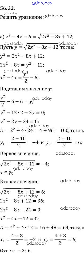 Ответы к §56. Общие методы решения уравнений Глава 10 56. 32 Задачнику по Алгебре для 10-11 класса Мордкович, Денищева Базовый уровень Мнемозина 2015