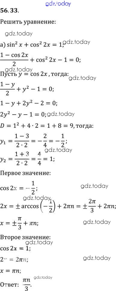 Ответы к §56. Общие методы решения уравнений Глава 10 56. 33 Задачнику по Алгебре для 10-11 класса Мордкович, Денищева Базовый уровень Мнемозина 2015