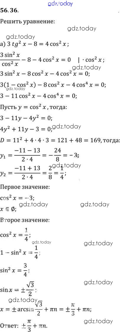 Ответы к §56. Общие методы решения уравнений Глава 10 56. 36 Задачнику по Алгебре для 10-11 класса Мордкович, Денищева Базовый уровень Мнемозина 2015