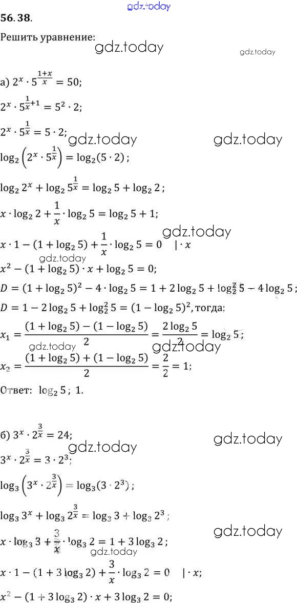 Ответы к §56. Общие методы решения уравнений Глава 10 56. 38 Задачнику по Алгебре для 10-11 класса Мордкович, Денищева Базовый уровень Мнемозина 2015