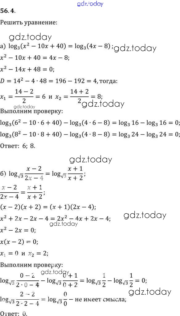 Ответы к §56. Общие методы решения уравнений Глава 10 56. 4 Задачнику по Алгебре для 10-11 класса Мордкович, Денищева Базовый уровень Мнемозина 2015