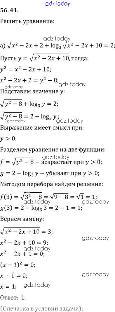 Ответы к §56. Общие методы решения уравнений Глава 10 56. 41 Задачнику по Алгебре для 10-11 класса Мордкович, Денищева Базовый уровень Мнемозина 2015