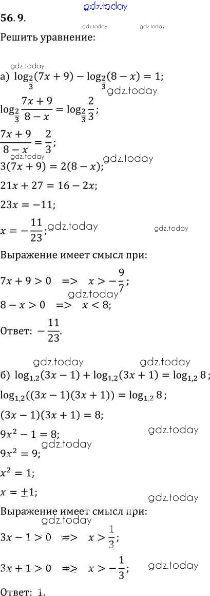 Ответы к §56. Общие методы решения уравнений Глава 10 56. 9 Задачнику по Алгебре для 10-11 класса Мордкович, Денищева Базовый уровень Мнемозина 2015
