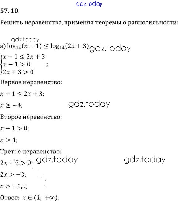 Ответы к §57. Решение неравенств с одной переменной Глава 10 57. 10 Задачнику по Алгебре для 10-11 класса Мордкович, Денищева Базовый уровень Мнемозина 2015