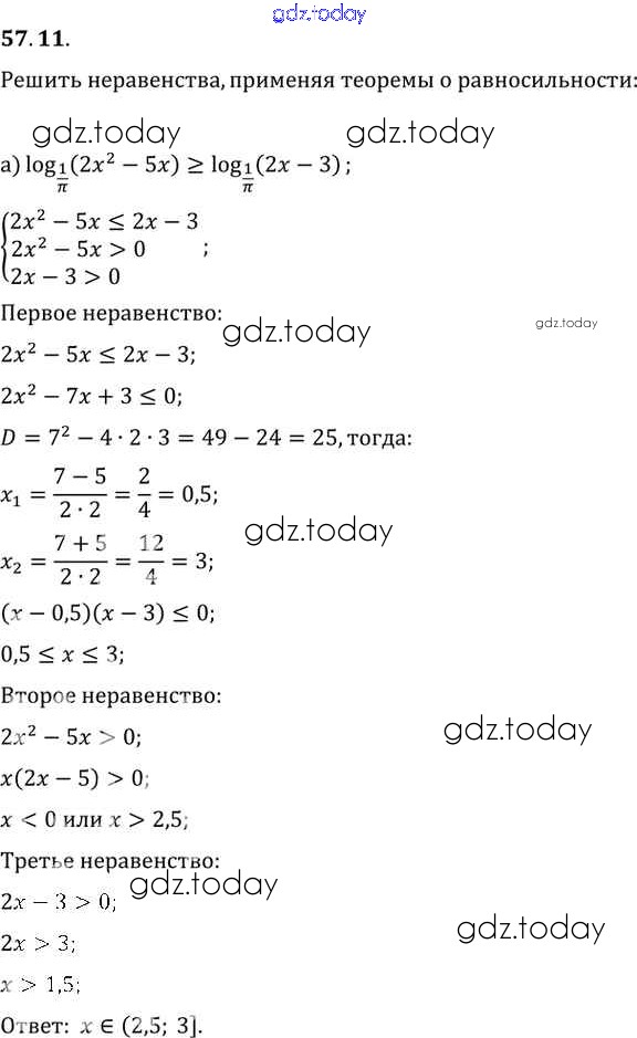 Ответы к §57. Решение неравенств с одной переменной Глава 10 57. 11 Задачнику по Алгебре для 10-11 класса Мордкович, Денищева Базовый уровень Мнемозина 2015