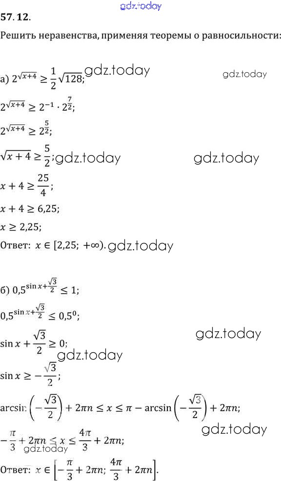 Ответы к §57. Решение неравенств с одной переменной Глава 10 57. 12 Задачнику по Алгебре для 10-11 класса Мордкович, Денищева Базовый уровень Мнемозина 2015