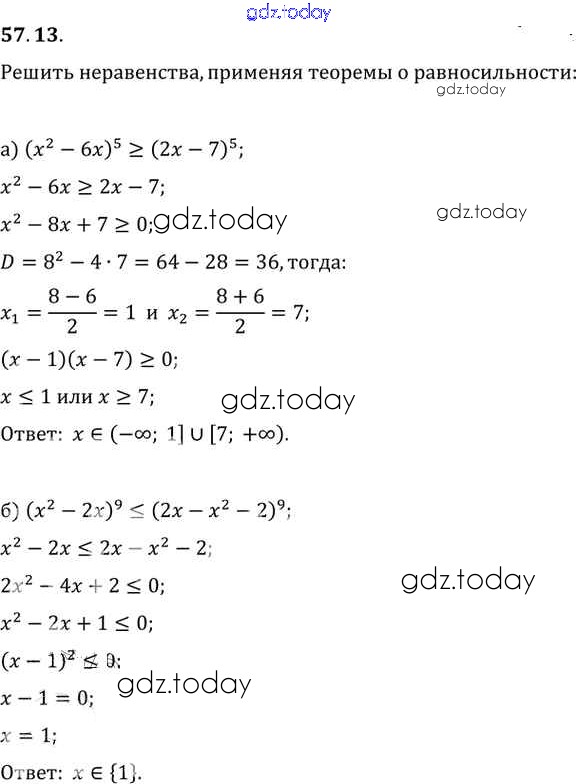 Ответы к §57. Решение неравенств с одной переменной Глава 10 57. 13 Задачнику по Алгебре для 10-11 класса Мордкович, Денищева Базовый уровень Мнемозина 2015