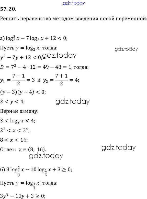 Ответы к §57. Решение неравенств с одной переменной Глава 10 57. 20 Задачнику по Алгебре для 10-11 класса Мордкович, Денищева Базовый уровень Мнемозина 2015