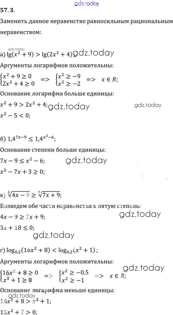 Ответы к §57. Решение неравенств с одной переменной Глава 10 57. 3 Задачнику по Алгебре для 10-11 класса Мордкович, Денищева Базовый уровень Мнемозина 2015