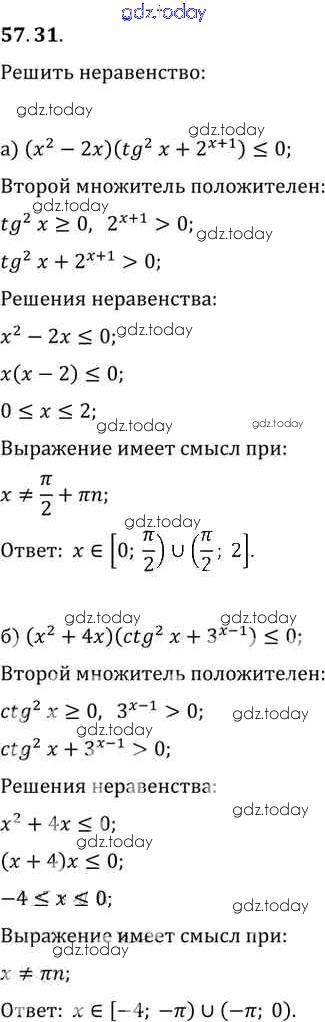 Ответы к §57. Решение неравенств с одной переменной Глава 10 57. 31 Задачнику по Алгебре для 10-11 класса Мордкович, Денищева Базовый уровень Мнемозина 2015