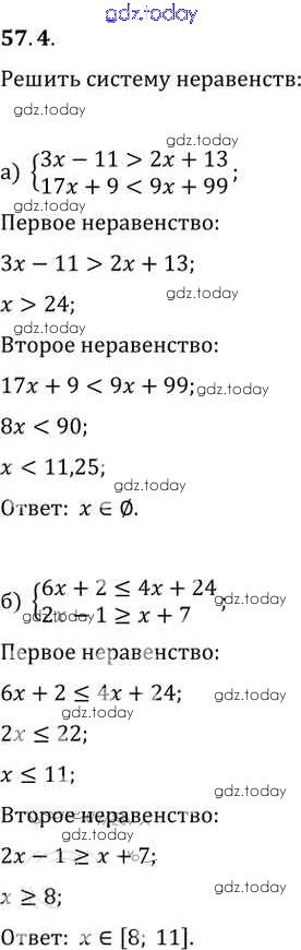 Ответы к §57. Решение неравенств с одной переменной Глава 10 57. 4 Задачнику по Алгебре для 10-11 класса Мордкович, Денищева Базовый уровень Мнемозина 2015