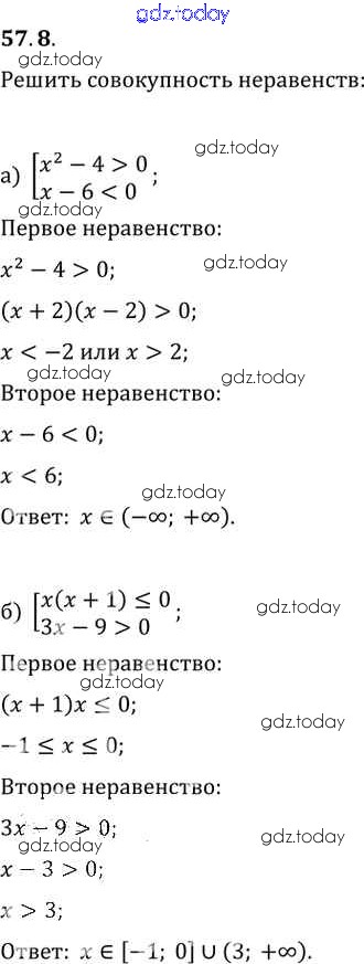 На страницах сайта gdz.today вы найдете учебный и вспомогательный материал, направленный на улучшения знаний школьной программы. ГДЗ - онлайн мир знаний §57. Решение неравенств с одной переменной Глава 10 57. 8 Задачнику по Алгебре для 10-11 класса Мордкович, Денищева Базовый уровень Мнемозина 2015
