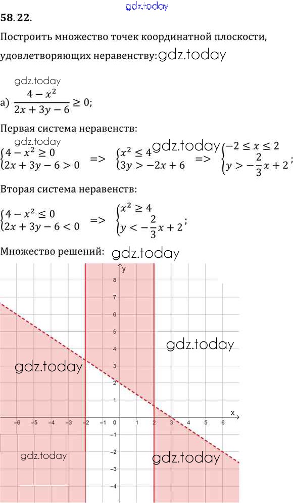 На страницах сайта gdz.today вы найдете учебный и вспомогательный материал, направленный на улучшения знаний школьной программы. ГДЗ - онлайн мир знаний §58. Уравнения и неравенства с двумя переменным Глава 10 58. 22 Задачнику по Алгебре для 10-11 класса Мордкович, Денищева Базовый уровень Мнемозина 2015