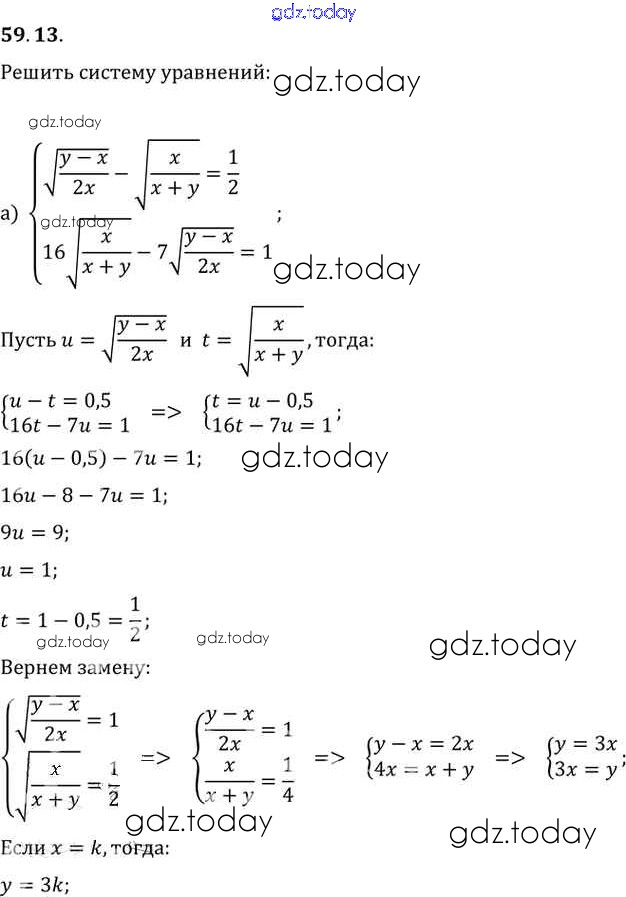 Ответы к §59. Системы уравнений Глава 10 59. 13 Задачнику по Алгебре для 10-11 класса Мордкович, Денищева Базовый уровень Мнемозина 2015