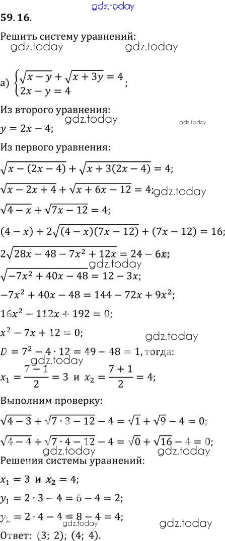 На страницах сайта gdz.today вы найдете учебный и вспомогательный материал, направленный на улучшения знаний школьной программы. ГДЗ - онлайн мир знаний §59. Системы уравнений Глава 10 59. 16 Задачнику по Алгебре для 10-11 класса Мордкович, Денищева Базовый уровень Мнемозина 2015