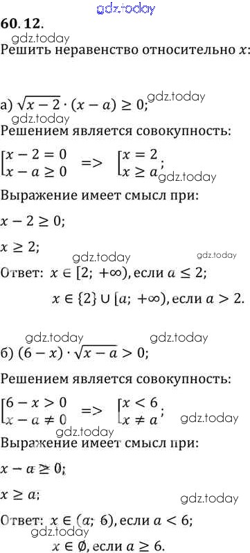 Ответы к §60. Задачи с параметрами Глава 10 60. 12 Задачнику по Алгебре для 10-11 класса Мордкович, Денищева Базовый уровень Мнемозина 2015