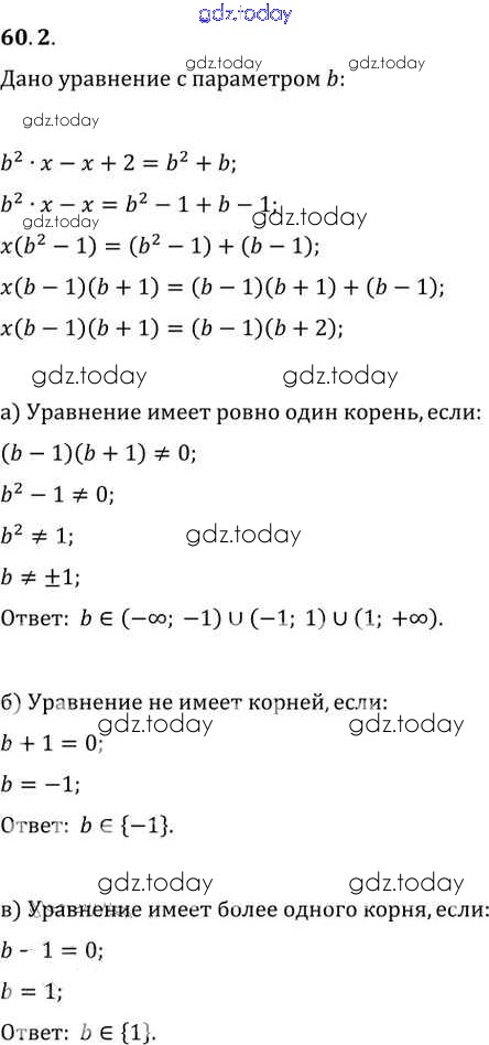 Ответы к §60. Задачи с параметрами Глава 10 60. 2 Задачнику по Алгебре для 10-11 класса Мордкович, Денищева Базовый уровень Мнемозина 2015