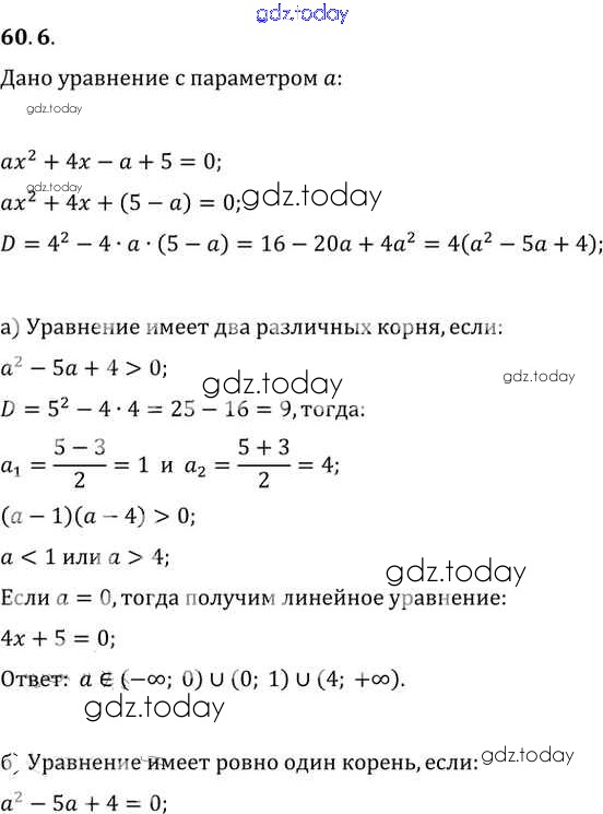 Ответы к §60. Задачи с параметрами Глава 10 60. 6 Задачнику по Алгебре для 10-11 класса Мордкович, Денищева Базовый уровень Мнемозина 2015