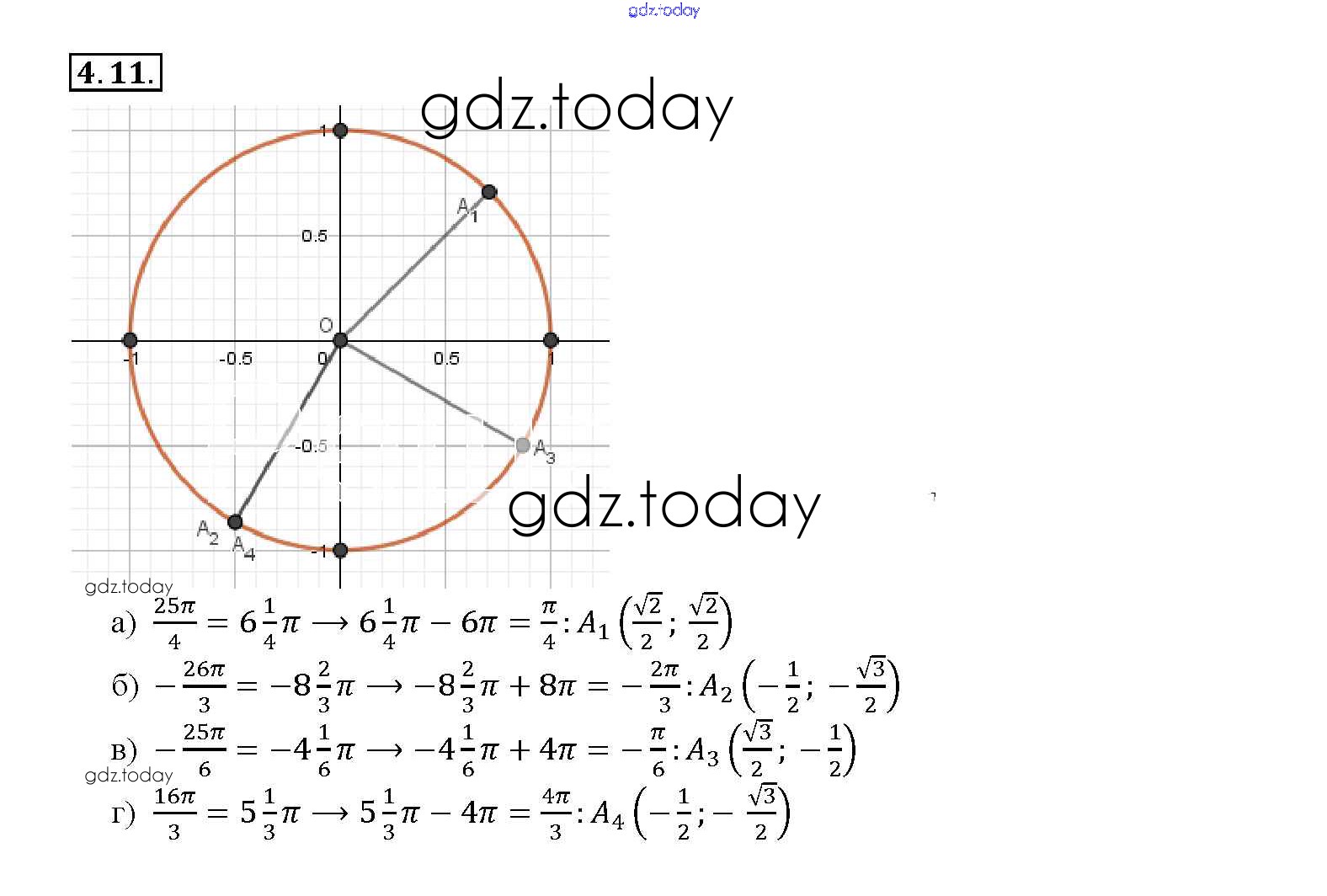 Ответы к §4. Числовая окружность Глава 2 4. 11 Задачнику по Алгебре для 10-11 класса Мордкович, Денищева Базовый уровень Мнемозина 2015