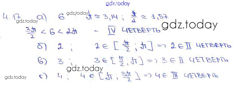 Ответы к §4. Числовая окружность Глава 2 4. 17 Задачнику по Алгебре для 10-11 класса Мордкович, Денищева Базовый уровень Мнемозина 2015