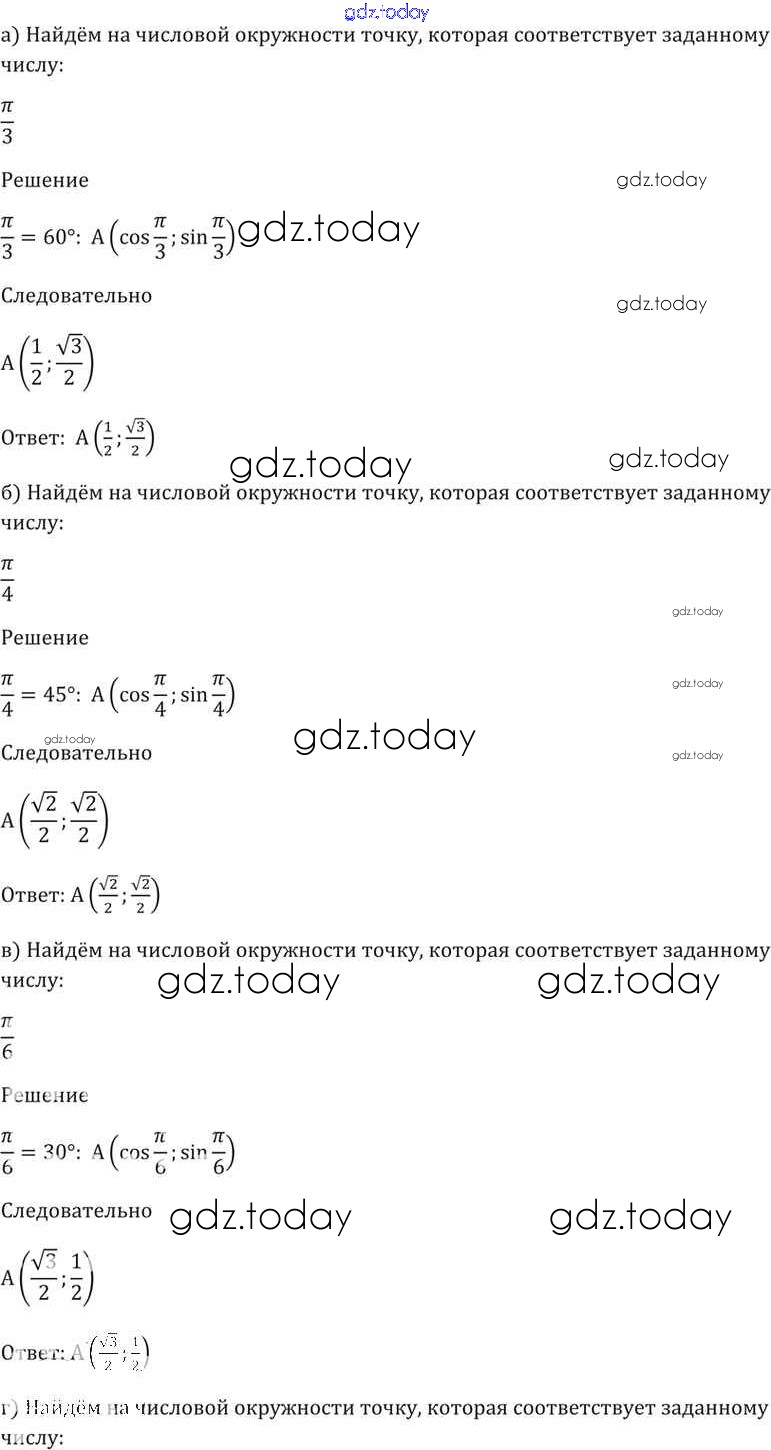 Ответы к §4. Числовая окружность Глава 2 4. 7 Задачнику по Алгебре для 10-11 класса Мордкович, Денищева Базовый уровень Мнемозина 2015