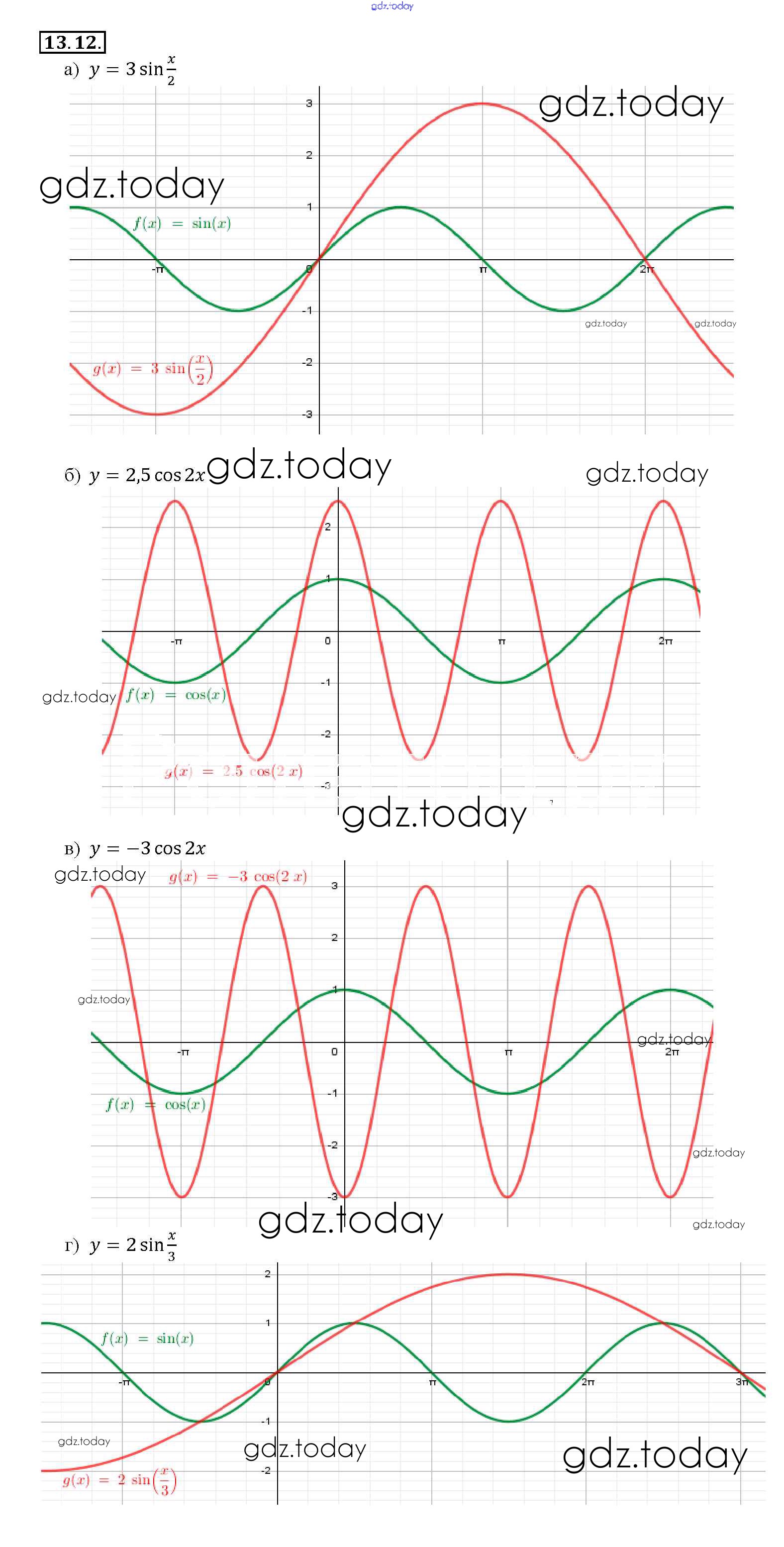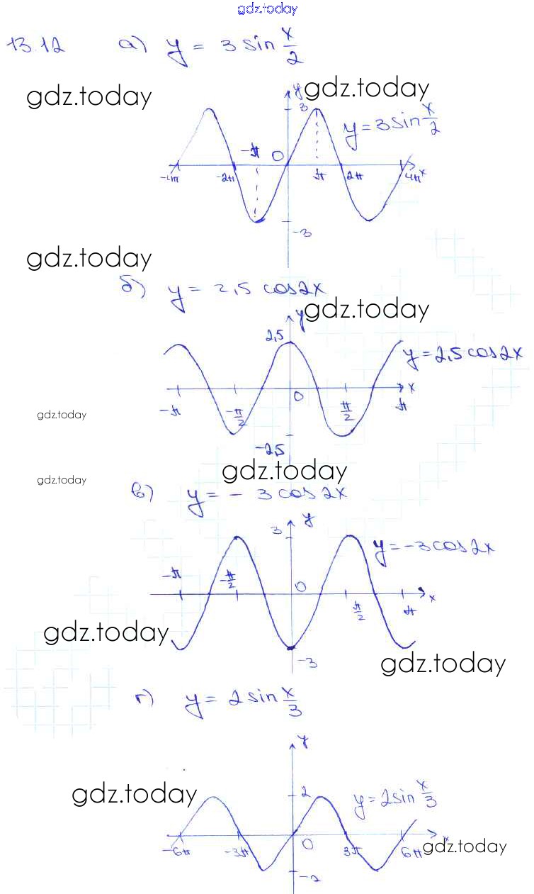 Ответы к §13. Преобразование графиков тригонометрических функций Глава 2 13. 12 Задачнику по Алгебре для 10-11 класса Мордкович, Денищева Базовый уровень Мнемозина 2015