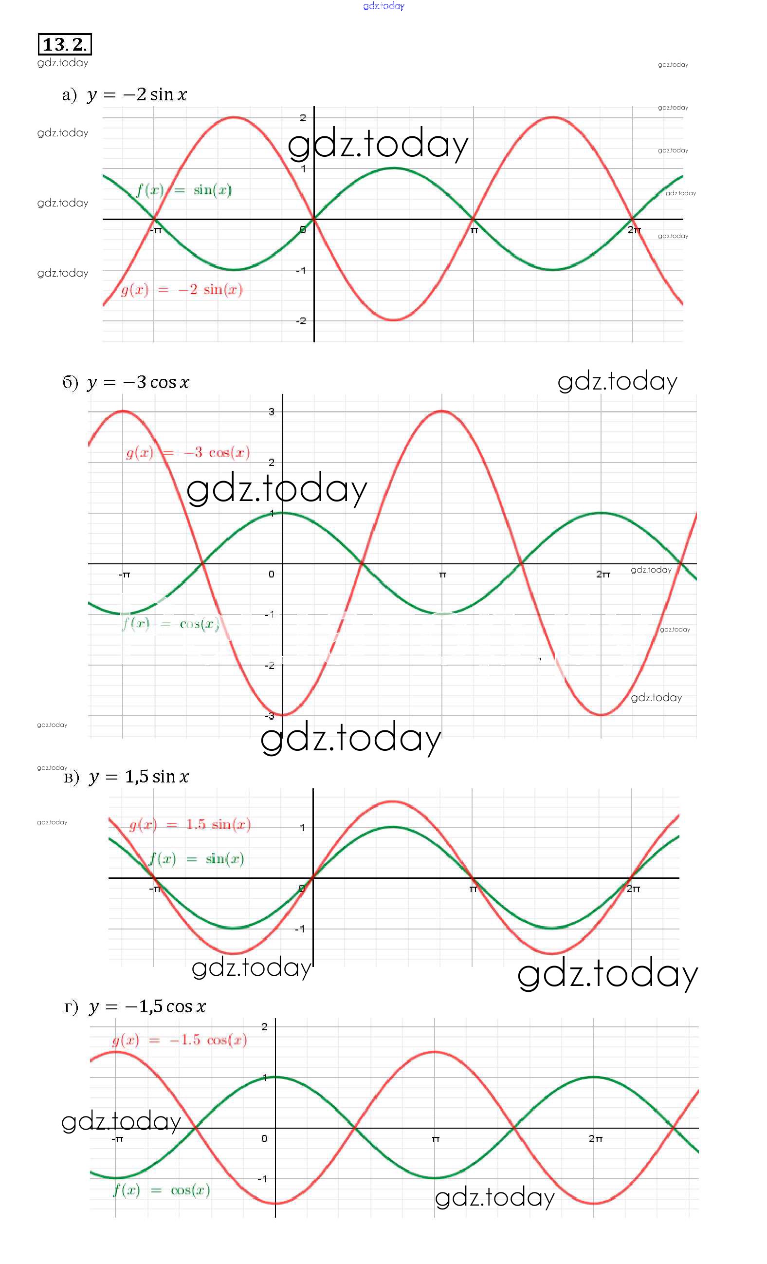 Ответы к §13. Преобразование графиков тригонометрических функций Глава 2 13. 2 Задачнику по Алгебре для 10-11 класса Мордкович, Денищева Базовый уровень Мнемозина 2015