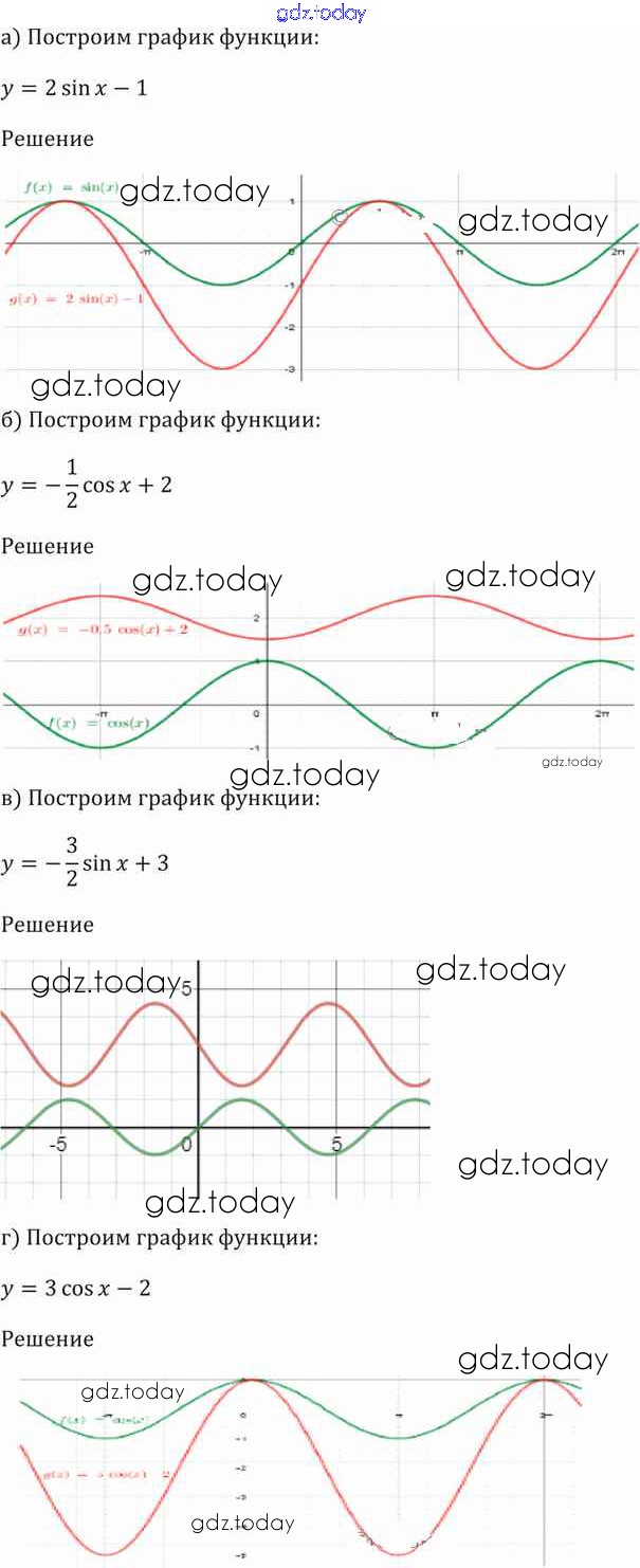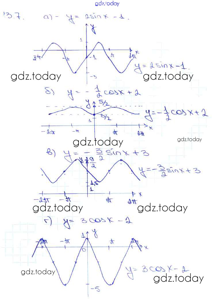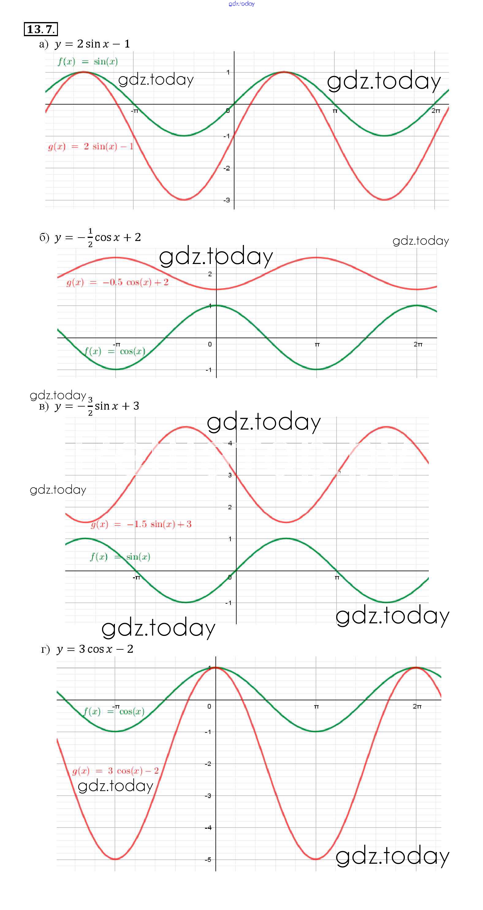 Ответы к §13. Преобразование графиков тригонометрических функций Глава 2 13. 7 Задачнику по Алгебре для 10-11 класса Мордкович, Денищева Базовый уровень Мнемозина 2015