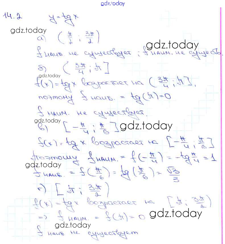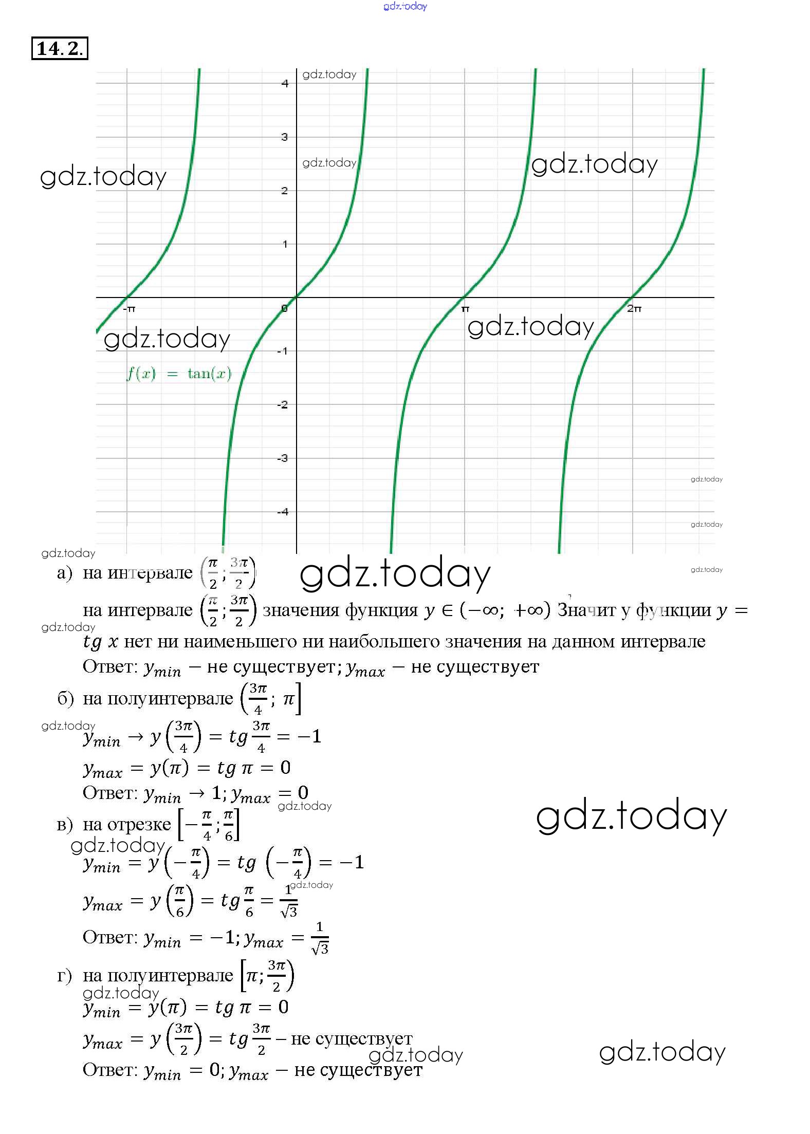 Ответы к §14. Функция y = tg x, y = ctg x, их свойства и график Глава 2 14. 2 Задачнику по Алгебре для 10-11 класса Мордкович, Денищева Базовый уровень Мнемозина 2015