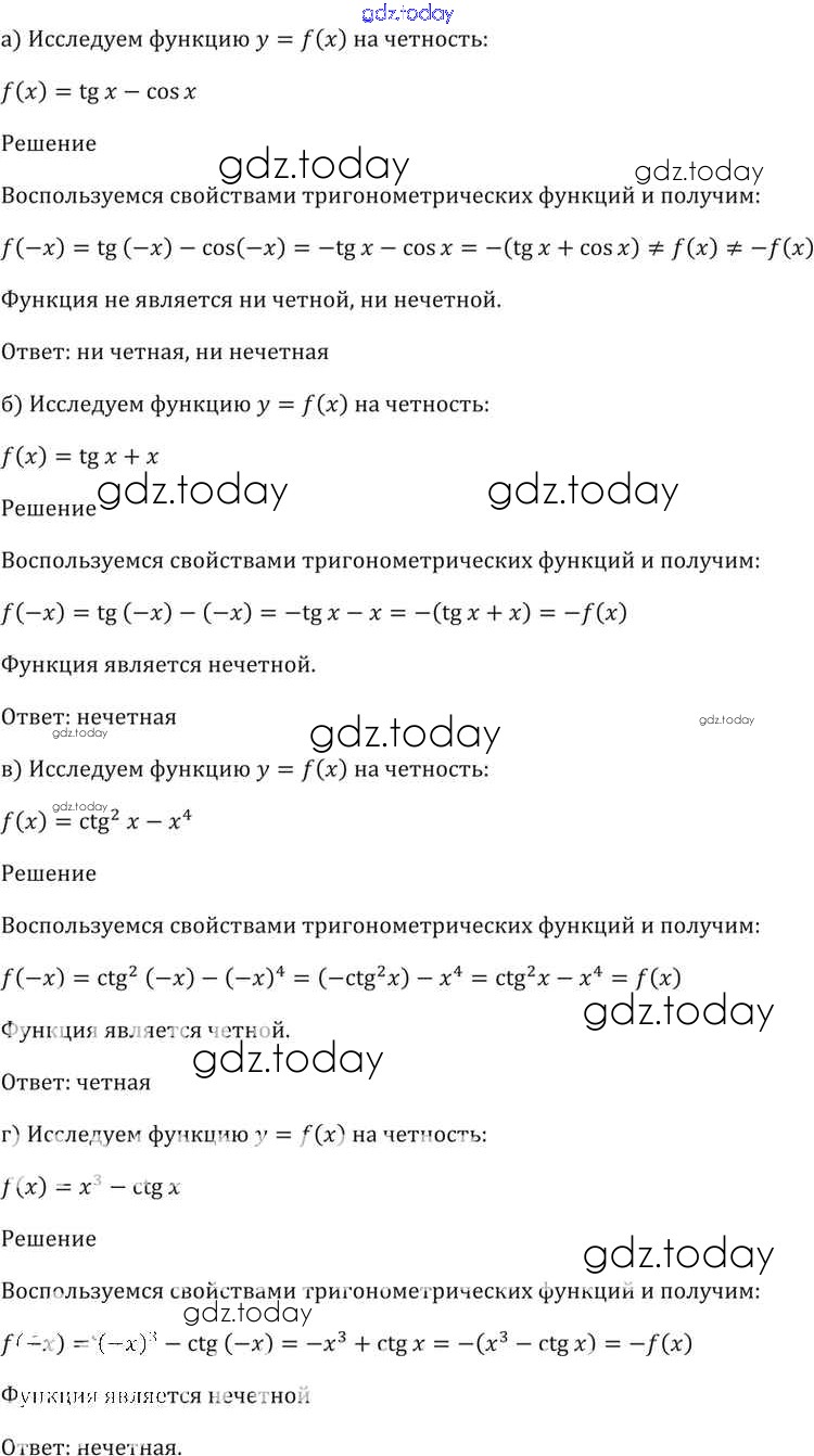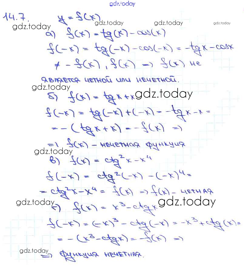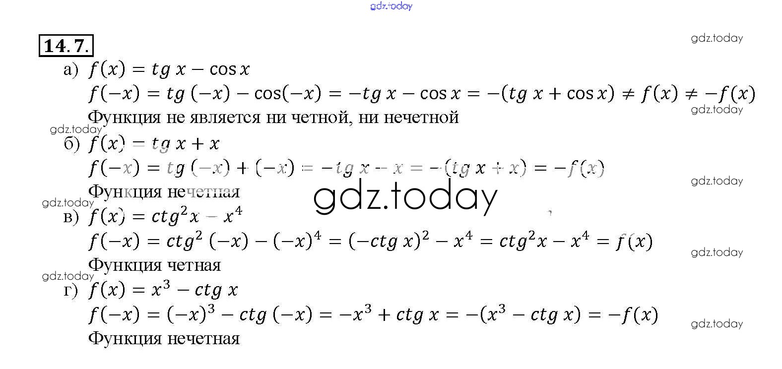 Ответы к §14. Функция y = tg x, y = ctg x, их свойства и график Глава 2 14. 7 Задачнику по Алгебре для 10-11 класса Мордкович, Денищева Базовый уровень Мнемозина 2015