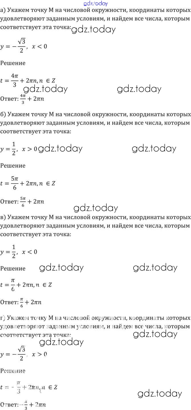 Ответы к §5. Числовая окружность на координатной плоскости Глава 2 5. 10 Задачнику по Алгебре для 10-11 класса Мордкович, Денищева Базовый уровень Мнемозина 2015