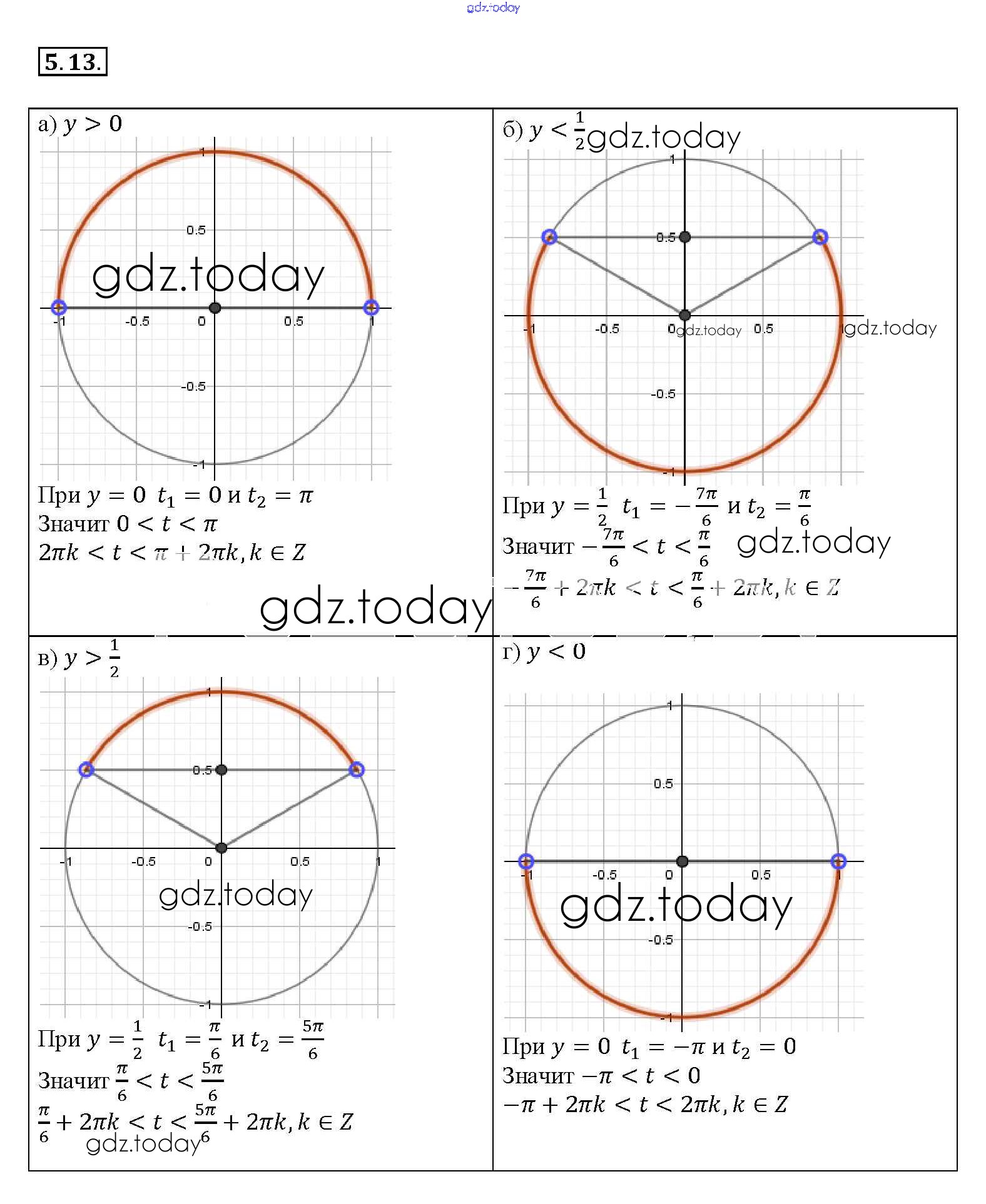 Ответы к §5. Числовая окружность на координатной плоскости Глава 2 5. 13 Задачнику по Алгебре для 10-11 класса Мордкович, Денищева Базовый уровень Мнемозина 2015