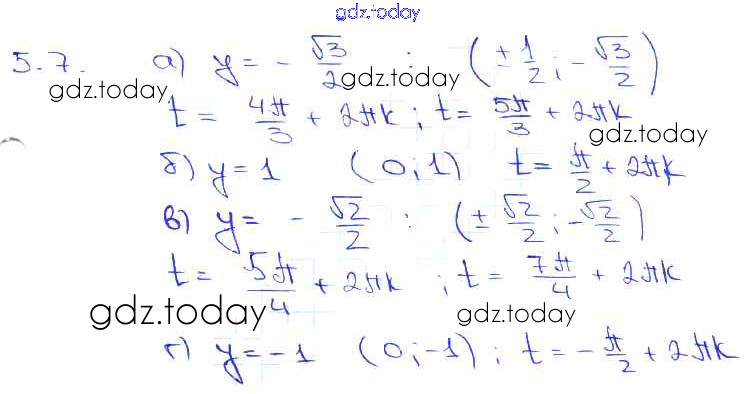 Ответы к §5. Числовая окружность на координатной плоскости Глава 2 5. 7 Задачнику по Алгебре для 10-11 класса Мордкович, Денищева Базовый уровень Мнемозина 2015