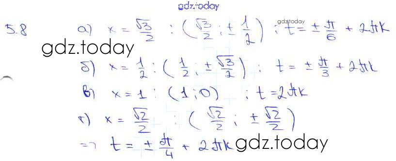 Ответы к §5. Числовая окружность на координатной плоскости Глава 2 5. 8 Задачнику по Алгебре для 10-11 класса Мордкович, Денищева Базовый уровень Мнемозина 2015
