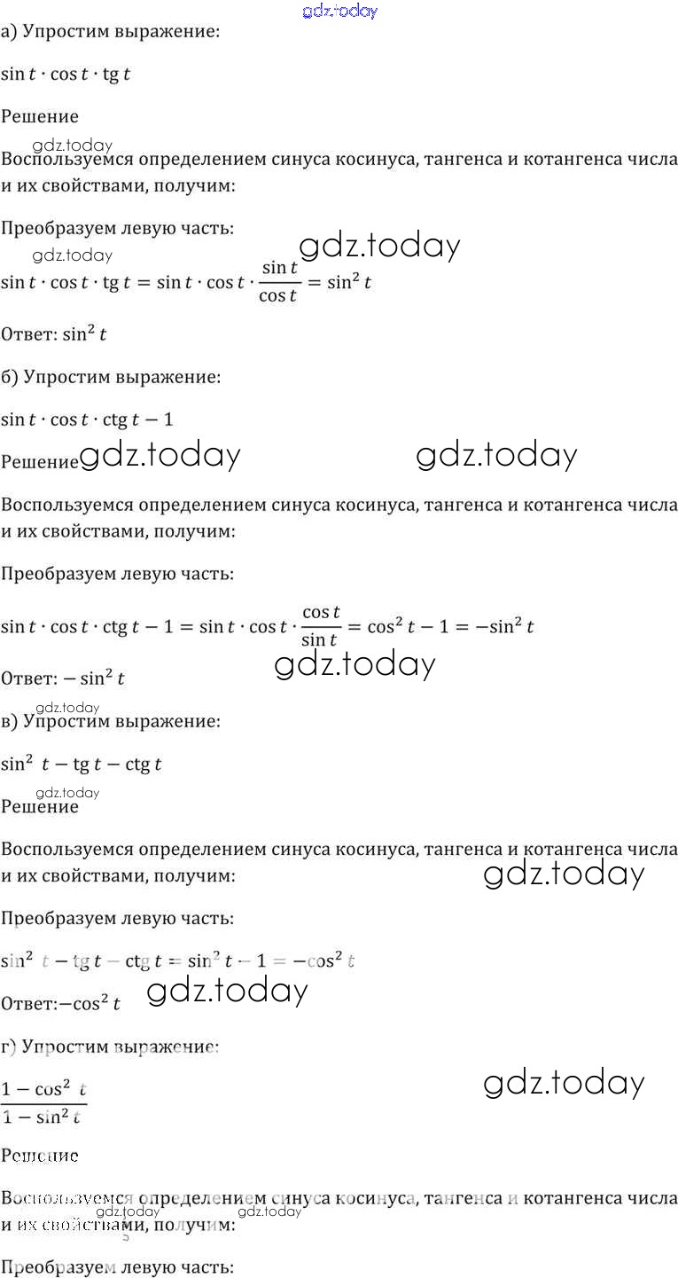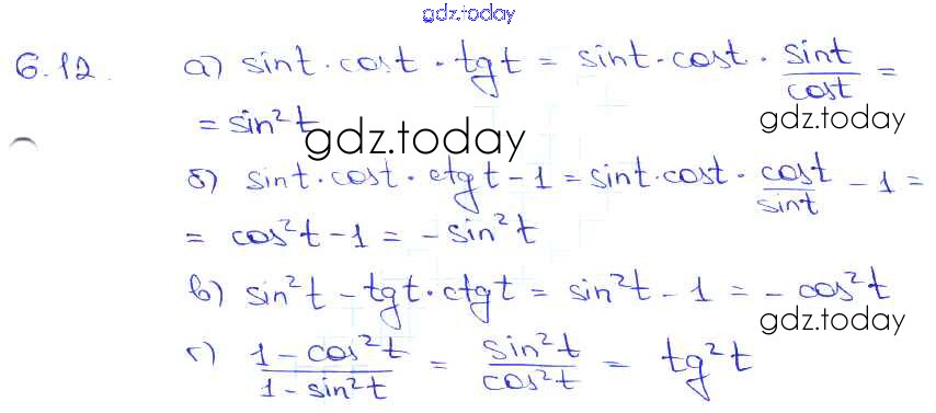 На страницах сайта gdz.today вы найдете учебный и вспомогательный материал, направленный на улучшения знаний школьной программы. ГДЗ - онлайн мир знаний §6. Синус и косинус. Тангенс и катангенс Глава 2 6. 12 Задачнику по Алгебре для 10-11 класса Мордкович, Денищева Базовый уровень Мнемозина 2015