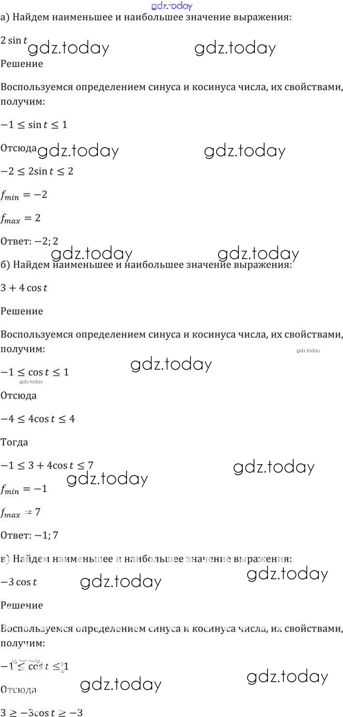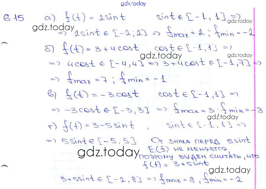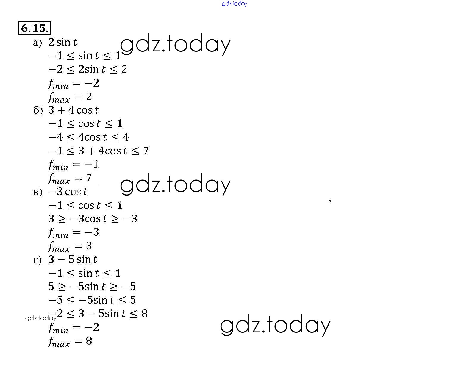 Ответы к §6. Синус и косинус. Тангенс и катангенс Глава 2 6. 15 Задачнику по Алгебре для 10-11 класса Мордкович, Денищева Базовый уровень Мнемозина 2015