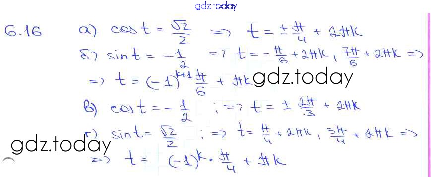 Ответы к §6. Синус и косинус. Тангенс и катангенс Глава 2 6. 16 Задачнику по Алгебре для 10-11 класса Мордкович, Денищева Базовый уровень Мнемозина 2015